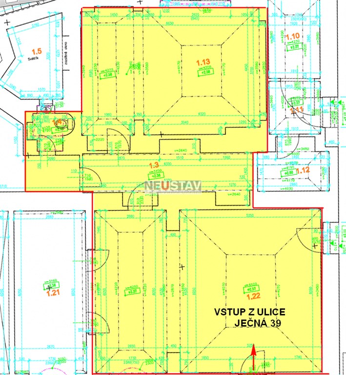 Pronájem nebytového prostoru 117 m2, s přímým vstupem z ulice Ječná 39, pouhých 100 m pod I.P. Pavlova. Vysoké klenbové stropy, celý prostor je po částečné rekonstrukci, hlavní místnost do ulice s výlohami 60 m2. Klasický retailový prostor s mnoha možnostmi využití. Doba pronájmu na 1 rok s opcí (dům postupně projde náročnou rekonstrukcí). El., voda, vlastní hygienické zázemí, přímotopy. K dispozici od 1.11.2015. Zvýhodněná cena měsíčního nájmu 25 tis. + energie. Nutno vidět.